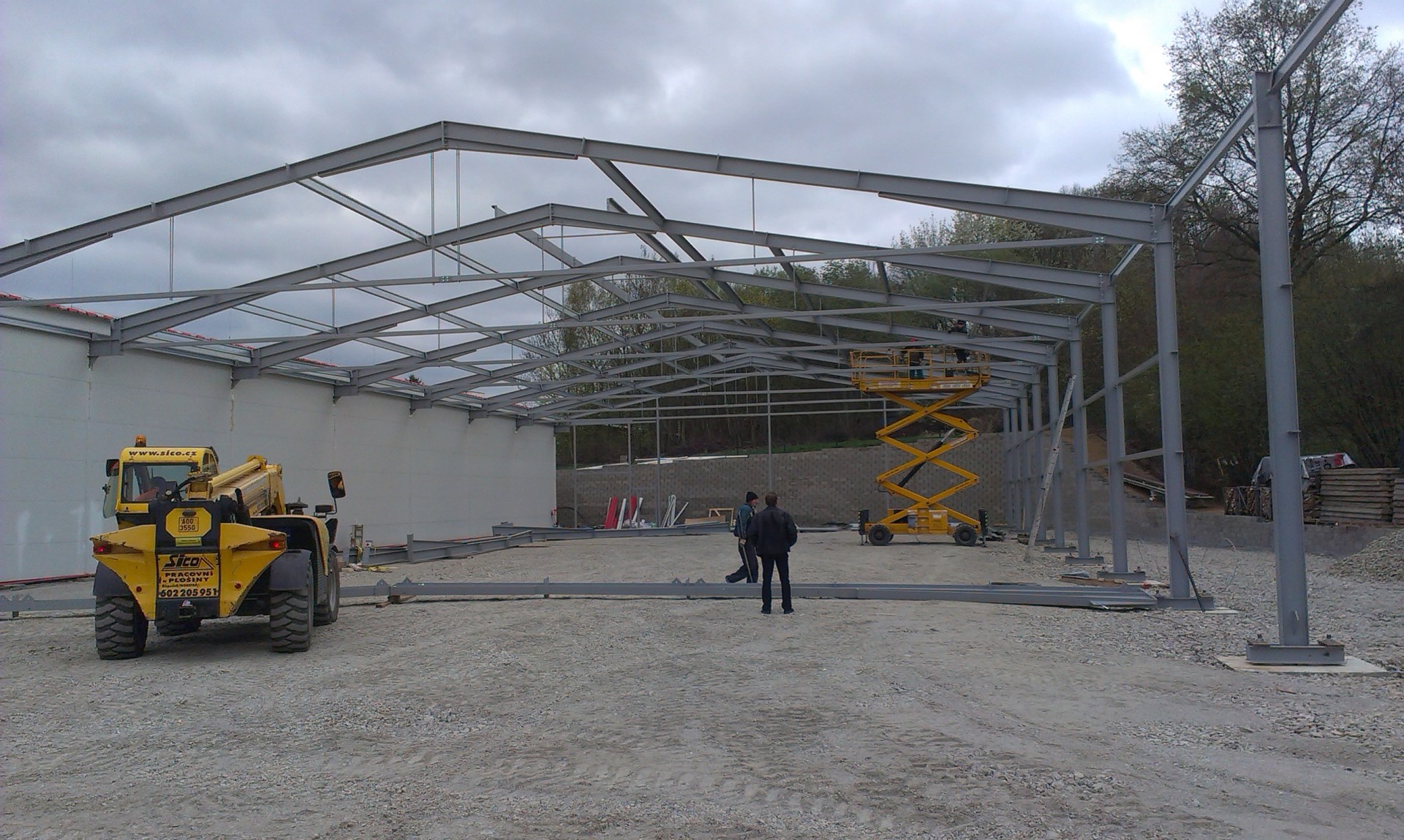 21.10.2013 jsme zahájili montáž ocelové konstrukce zatepléného hangáru. DOKONČENO 15.12.2013